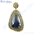 Sapphire Pendant Necklace | Antique Gold Finish | Women's Jewelry