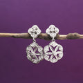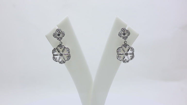 Pendientes de plata con flores y diamantes para mujer | Pendientes colgantes