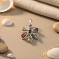 925 Silver Multi-Gemstone Flower Pendant for Women | Gift Jewelry