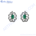 Emerald and Diamond Stud Earrings | Silver Floral Design for Women
