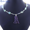 Artisan necklace featuring gemstones and a tassel pendant, perfect for women's fashion jewelry.