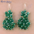 Green Jade Bead Earrings for Women | Silver Dangle Jewelry