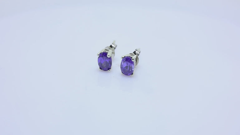 Silver Amethyst Stud Earrings for Women | Gemstone Jewelry