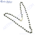 Silver Beaded Necklace | Dark Gemstone | Women's Jewelry Gift
