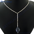 Silver Beaded Y-Necklace with Gemstone Pendant for Women
