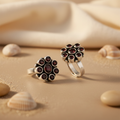 925 Silver Black Stone Toe Rings | Adjustable for Women