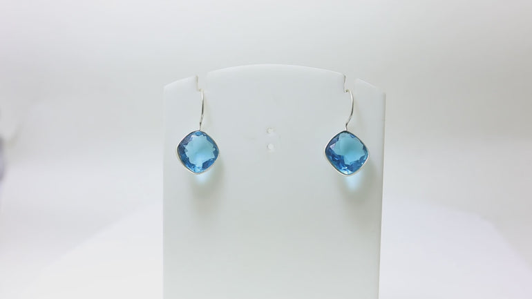 Silver Blue Topaz Cushion Cut Drop Earrings for Women
