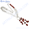 Silver chain necklace with red coral beads, a stylish jewelry piece for women.