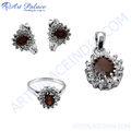 925 Silver Garnet Earrings, Ring & Pendant Set | Gift for Her