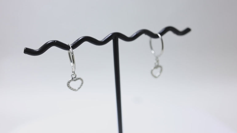 These elegant earrings feature a delicate heart-shaped design crafted from high-quality 925 sterling silver. The earrings showcase a classic hoop style with a charming heart pendant, adding a touch of romance to any look. These earrings are hypoallergenic, ensuring comfortable wear for sensitive ears. Perfect for daily wear, these earrings are a thoughtful gift. The earrings are made with durable materials to last. Explore our collection of silver earrings and find the perfect addition to your jewelry collection today.