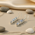 These elegant earrings feature genuine moonstone gemstones set in a 925 sterling silver design. The earrings are crafted with high-quality silver, known for its durability and hypoallergenic properties, making them suitable for sensitive skin. Each earring showcases multiple moonstone stones, creating a captivating visual effect. Moonstone is celebrated for its ethereal glow and unique play of light. These earrings are ideal for daily wear or gifting and will complement any outfit. The secure hook closure ensures comfortable and worry-free wear, providing a stylish accent for any occasion.