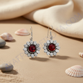 925 Silver Red Garnet Flower Earrings for Women | Gift Jewelry