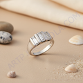 Sterling silver ring with baguette-cut white cubic zirconia stones, a modern and elegant design.
