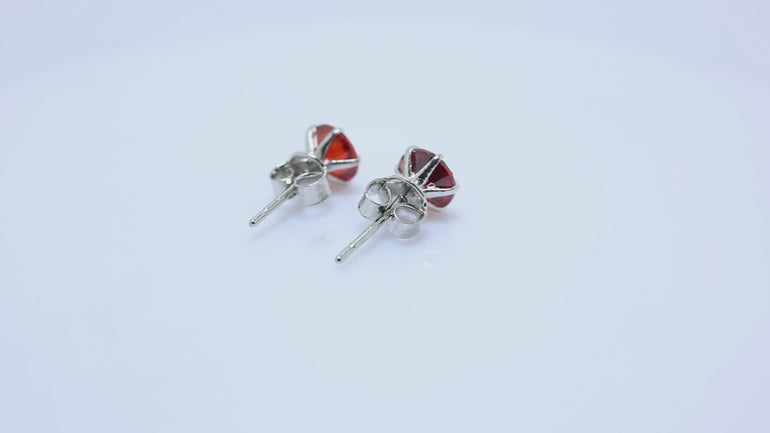 Silver Red Ruby Stud Earrings | Gemstone Jewelry for Women