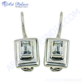 Silver Square Earrings with Gemstone | Elegant Women's Jewelry