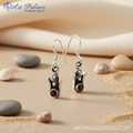These elegant earrings are crafted from high-quality 925 sterling silver. Featuring a unique design with a dark, oxidized finish, each earring showcases a vibrant, round garnet gemstone. The silver setting complements the deep red hue of the garnet, creating a striking contrast. These earrings are ideal for sensitive skin and are nickel-free. Perfect for adding a touch of sophistication to any outfit, these sterling silver garnet earrings are a timeless addition to your jewelry collection. This piece is a beautiful gift for her.