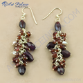 石榴石簇状吊坠耳环 | 925银 | 女士款