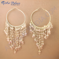 金色圆环耳环,饰以粉色宝石吊坠 | 女士珠宝
