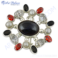 This exquisite brooch pin is crafted from high-quality 925 sterling silver. This statement jewelry features a unique design with an array of gemstones including black onyx, red garnet, clear quartz and pearl, adding a touch of color and sparkle. It’s perfect for adding flair to any outfit. This brooch offers durability and style. It is an ideal gift for yourself or a loved one. Suitable for daily wear or gifting.