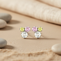 Silver Stud Earrings with Pink, Yellow & White Gemstones